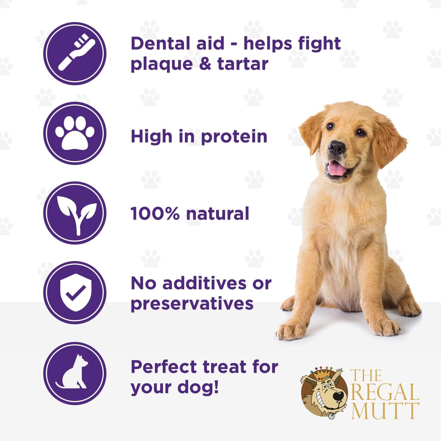 Description: The Regal Mutt Munchy Rolls are perfect dog treats and chews for your pet. If you are training your dog, you will need a delicious treat that he or she will not mind working hard for – these are perfect small treats for dogs. This is a supplementary food for dogs that is manufactured from premium-quality rawhide and starch. It satisfies your dog’s natural chewing instinct and helps improve its overall dental health. The Regal Mutt has a strong track record of producing top quality dog treats, with our products being manufactured to the most stringent standards.